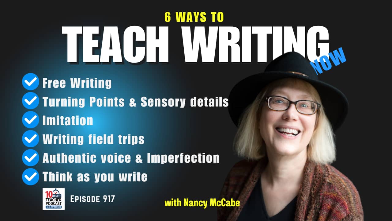 Nancy McCabe talks about teaching creative writing, free writing, writing “field trips” and the tricks to help kids enjoy writing. With a special focus for elementary classrooms, Nancy McCabe has lots of ideas in this quick episode. https://www.coolcatteacher.com/e917